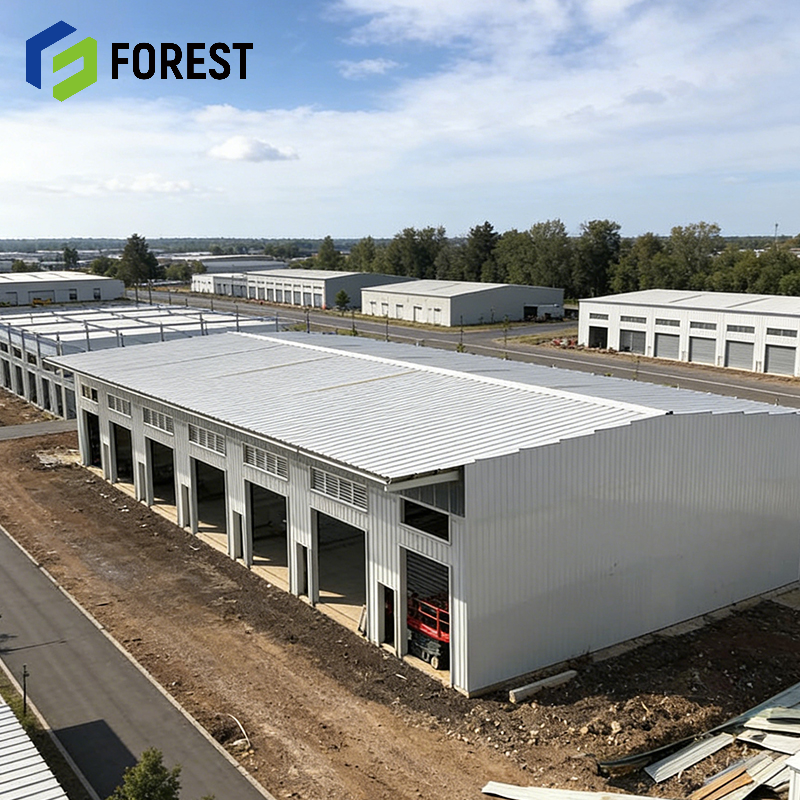 Entrepôt industriel à ossature métallique pour appartements, ateliers, supermarchés, bureaux, parcs, écoles, centres commerciaux et stockage intégré