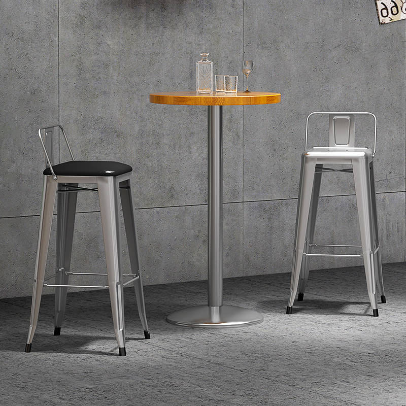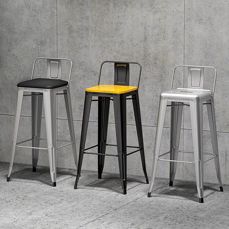 Tabouret de bar en fer de style industriel, en bois massif, pour usage commercial, hauteur non réglable, avec dossier, pour comptoir de caisse, table haute