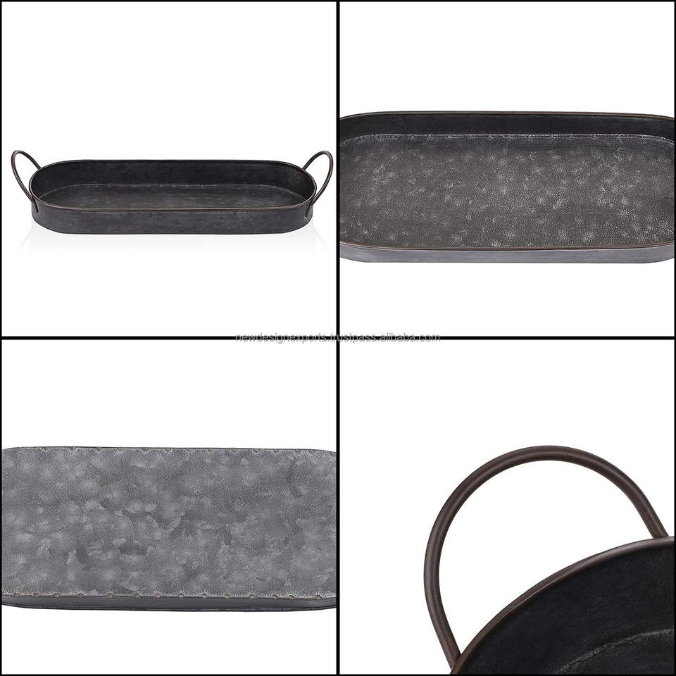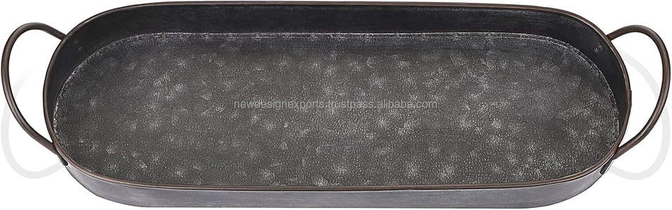 Plateau en fer métallique de style industriel Plateau de service galvanisé pour table basse Plateau de centre de table décoratif pour la maison Petit déjeuner rustique