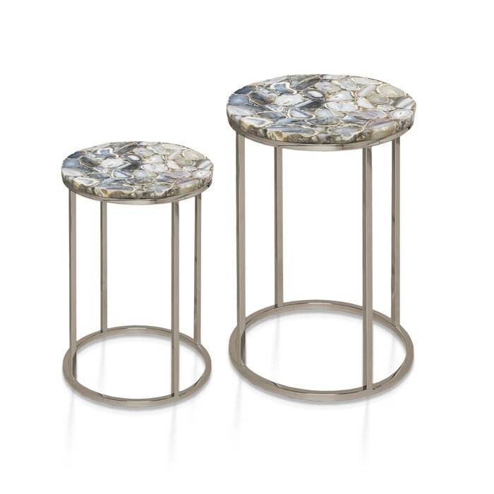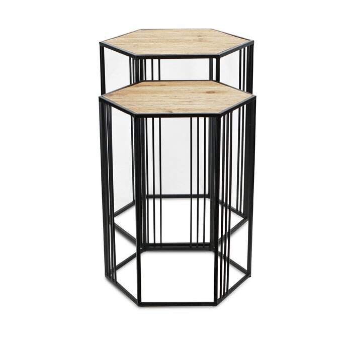 Ensemble de tables basses gigognes en métal de style industriel avec cadre robuste thermolaqué pour intérieurs contemporains