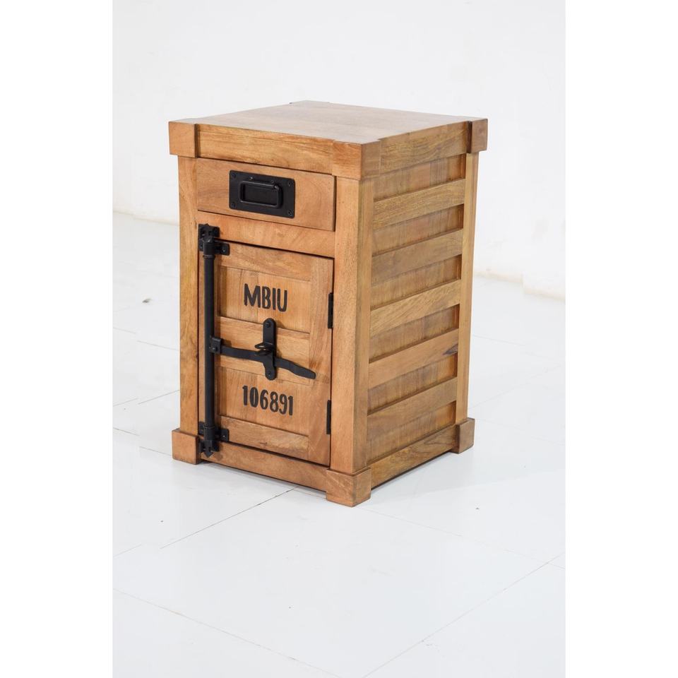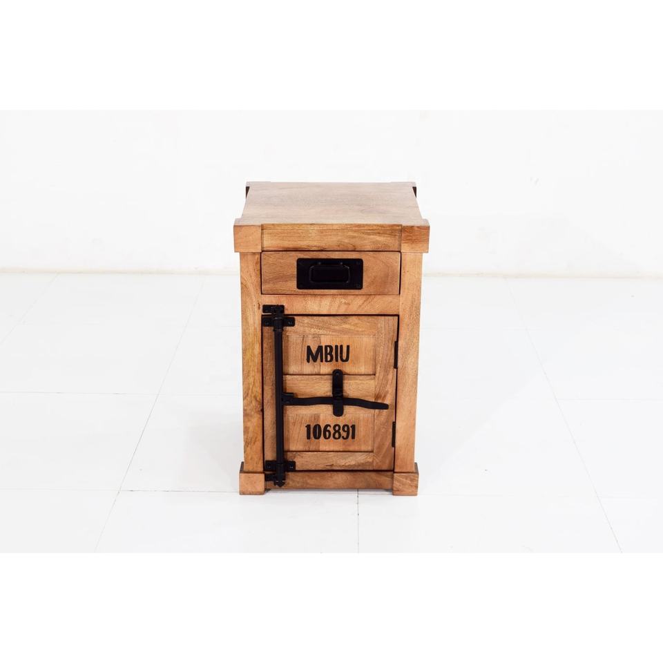Table de chevet à un tiroir de style industriel Finition rustique Bois de manguier inspiré Conteneur d'expédition Meubles de chambre à coucher pour appartement