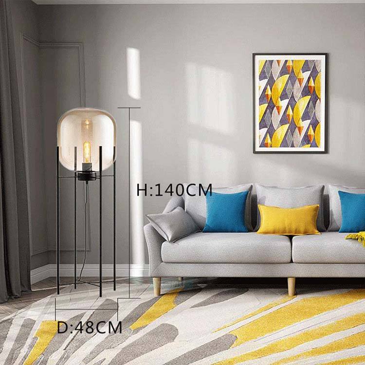 Lampe à quatre pieds en verre gris fumée, design industriel moderne, pour la chambre à coucher, le salon et l'étude, luminaire sol