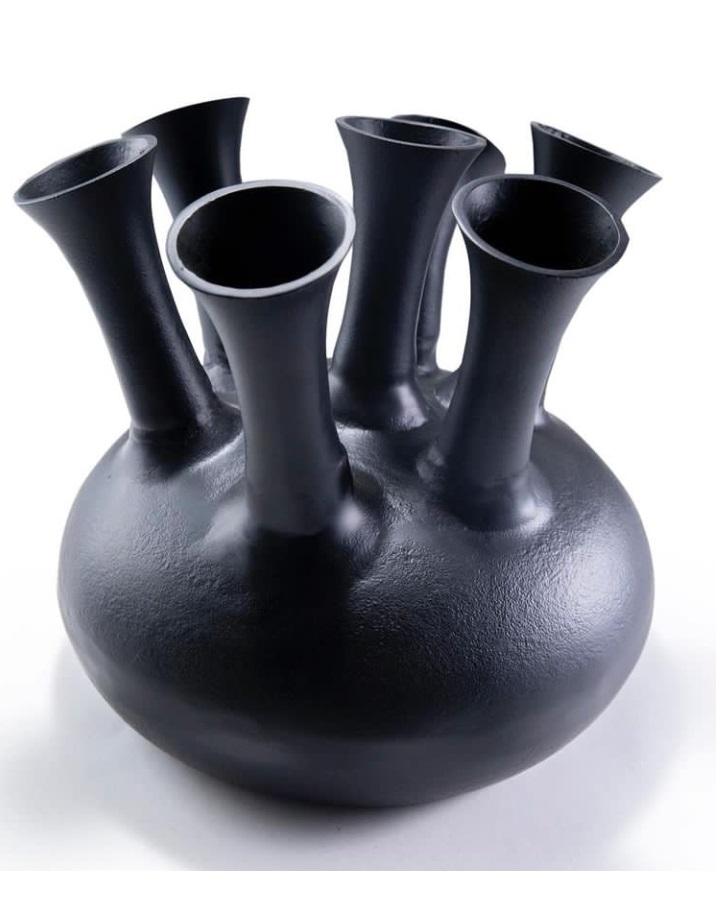 Vase multi-branches noir texturé de style industriel | Vase en argile de forme organique Wabi-Sabi | Arrangement floral unique pour bureau