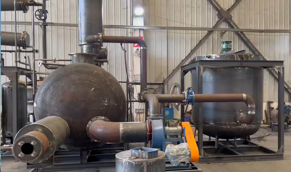 Machine de raffinage d'huiles usagées industrielles par catalyse avec catalyseur acido-basique ou catalyseur solide, production de diesel haute efficacité