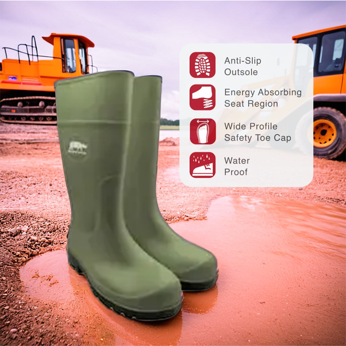 Bottes de travail industrielles imperméables en PVC avec embout en acier résistant à l'huile et au glissement pour la sécurité et le confort