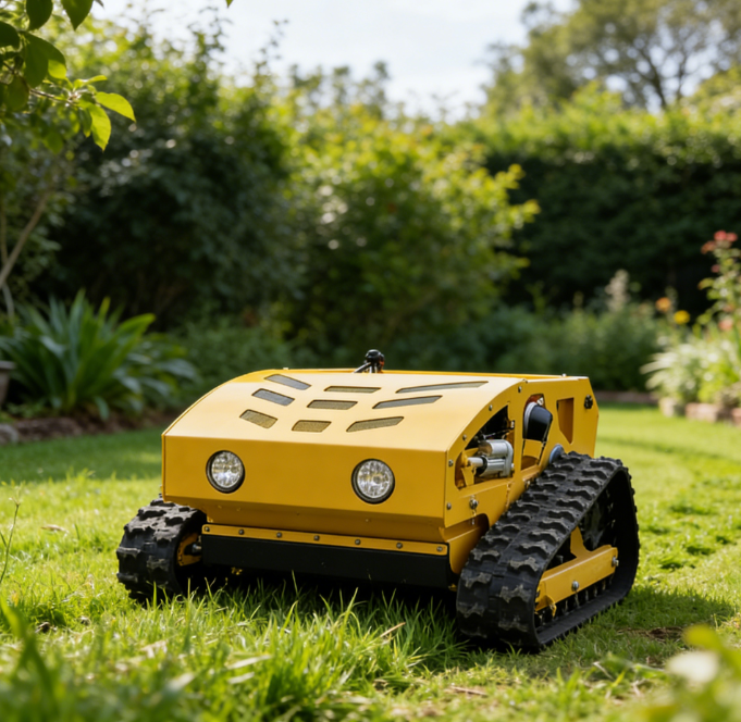 Tondeuse industrielle télécommandée sur chenilles pour désherbage, tondeuse à gazon tout-terrain à braquage zéro, à essence, pour pentes, très vendue