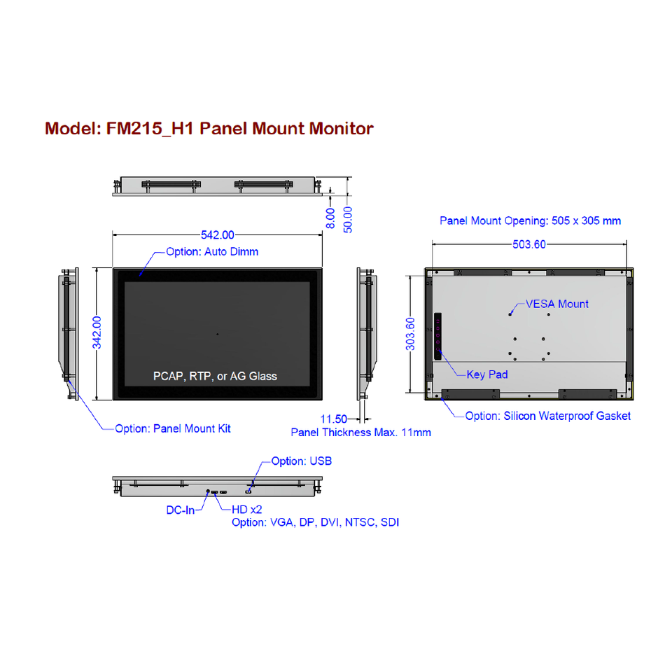 Video In:HDMI, Option: VGA / DP / DVI / HD-SDI / BNC