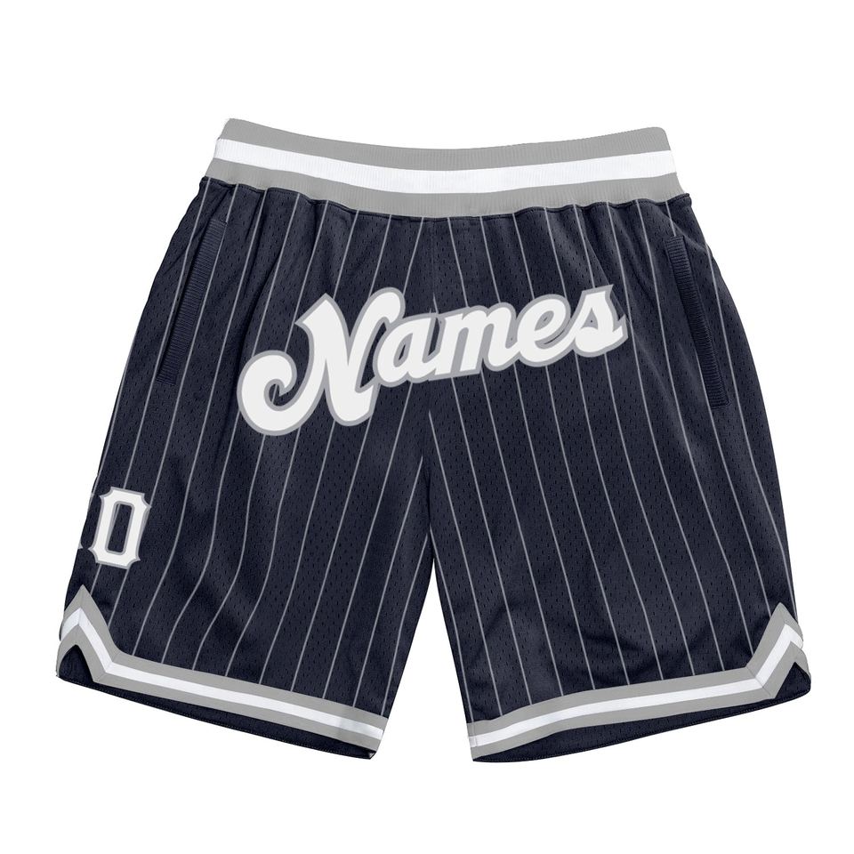 Industrie Direct Engro Sportswear Basketball Shorts Custom Navy White Pinstripe White-Gray Authentic Basketball Shorts