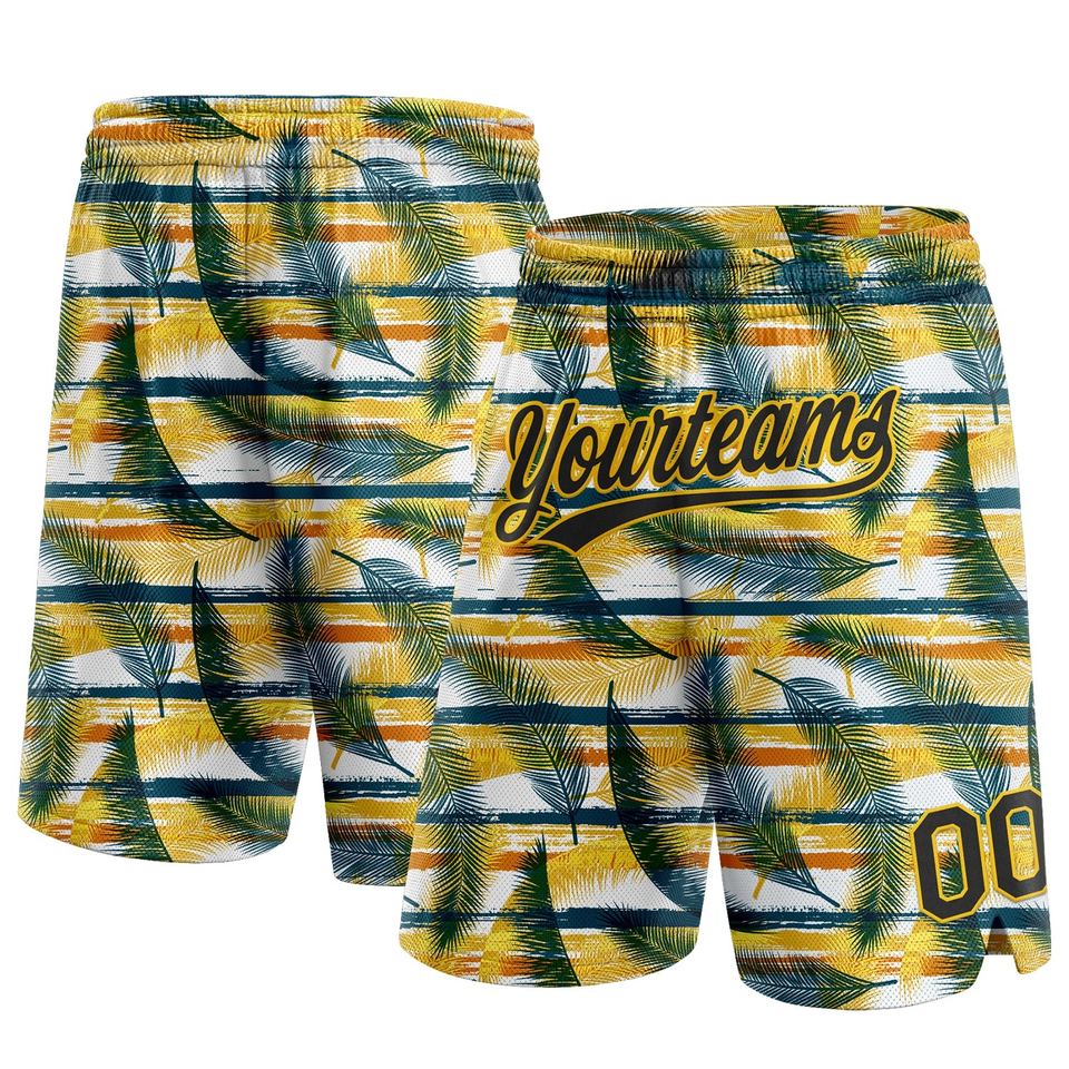 Industrie Direct Engro Sportswear Short de basket-ball personnalisé noir jaune-vert minuit 3D Hawaii feuilles de palmier Short de basket-ball