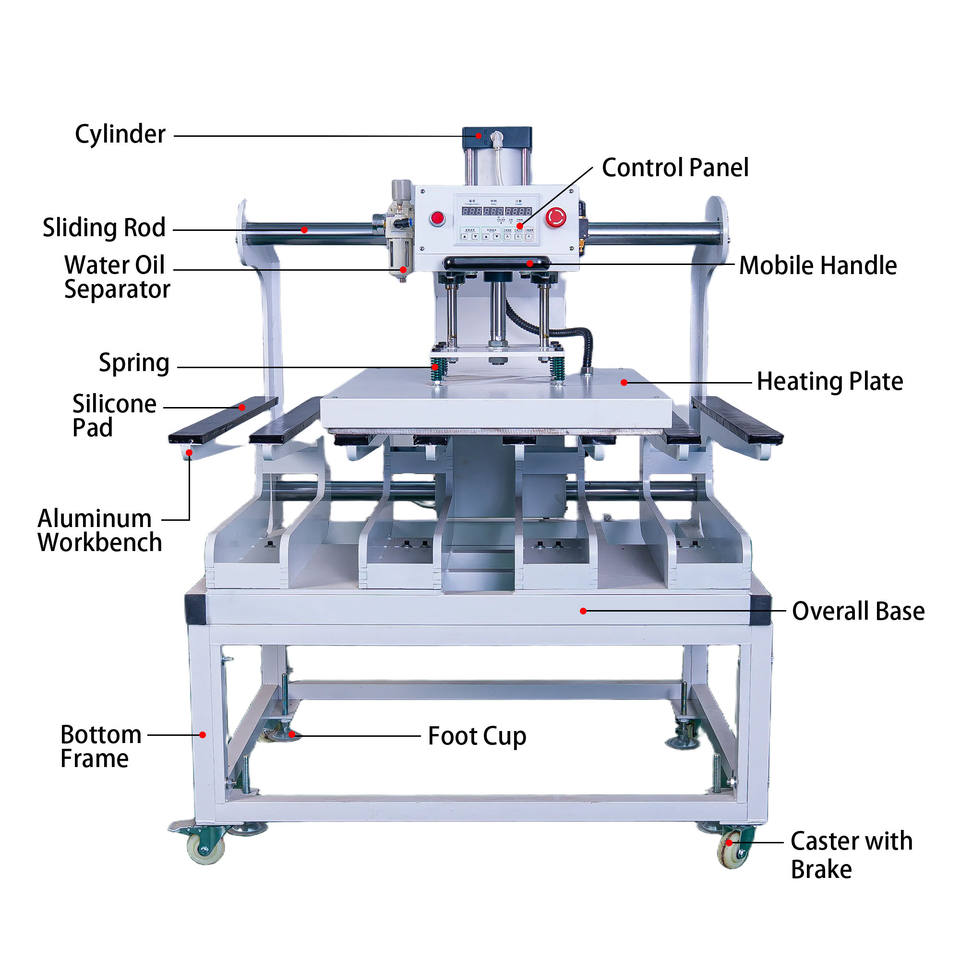 Machine de gaufrage 3D industrielle pour vêtements, manches et pantalons, pneumatique à glissière verticale, huit barres, sans couture latérale, semi-automatique 24x32