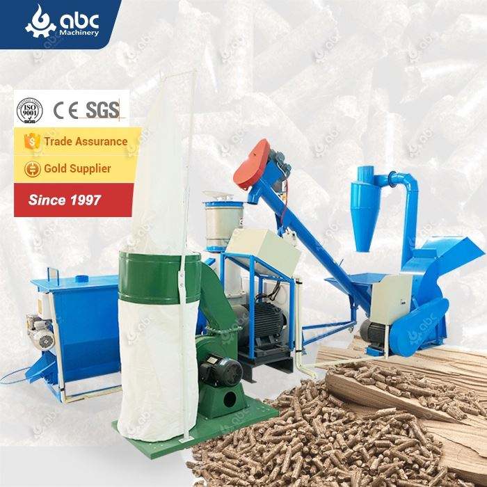 Broyage de bois, concassage, fraisage, granulation/extrusion/presse, refroidissement