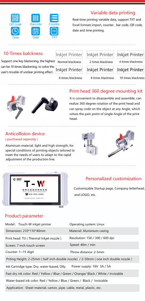 Utilisation:Imprimante à papier, Imprimante d'étiquette, Imprimante de Cartes, Imprimante à tube, Imprimante de Billets, Electronic component & Metal printer, bottle printer, plastic bag printer, metal printer, beverage printer