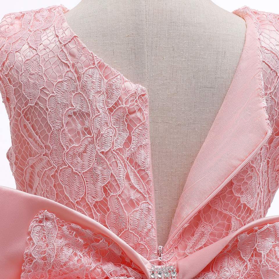 Robe de princesse mi-longue pour bébés et enfants, avec broderie en dentelle et grand nœud, idéale pour l'été, les anniversaires, les concours de beauté et les fêtes