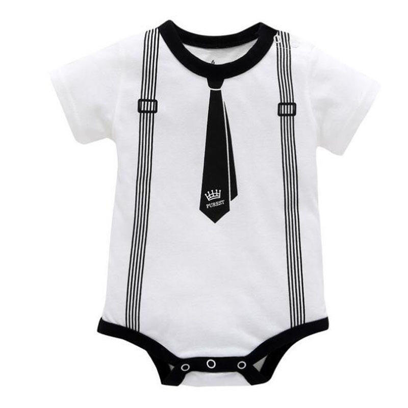Vêtements d'été pour bébé garçon, style gentleman, imprimé en coton, manches courtes, barboteuse pour tout-petit