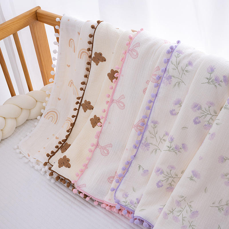 Couverture d'emmaillotage pour nouveau-né en coton 100% mousseline, tricotée, imprimée de dessins animés, respirante