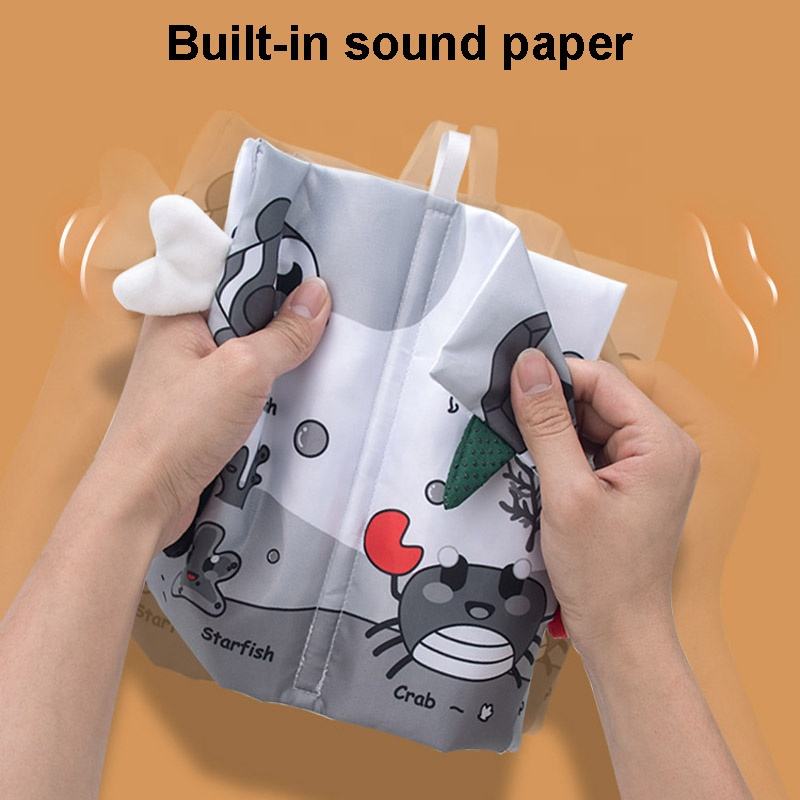 Argument de vente : livre en tissu pour bébé avec queues 3D:Sifflet BIBI intégré et papier sonore, peut émettre des sons