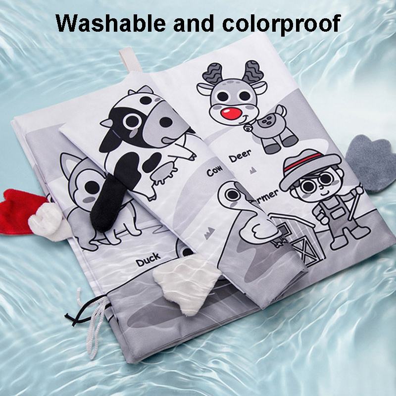 Avantage : livre en tissu pour bébé avec queues 3D:Il peut être mâché, lavable sans décoloration