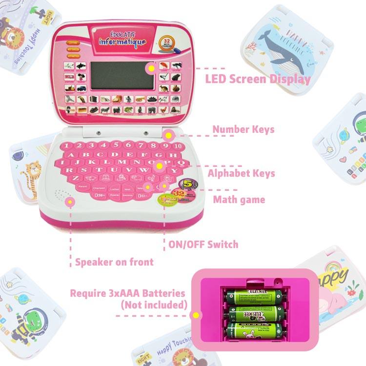 Jouet musical pour bébé Système d'apprentissage pour ordinateur portable Jouet éducatif pour ordinateur portable pour jeu Français
