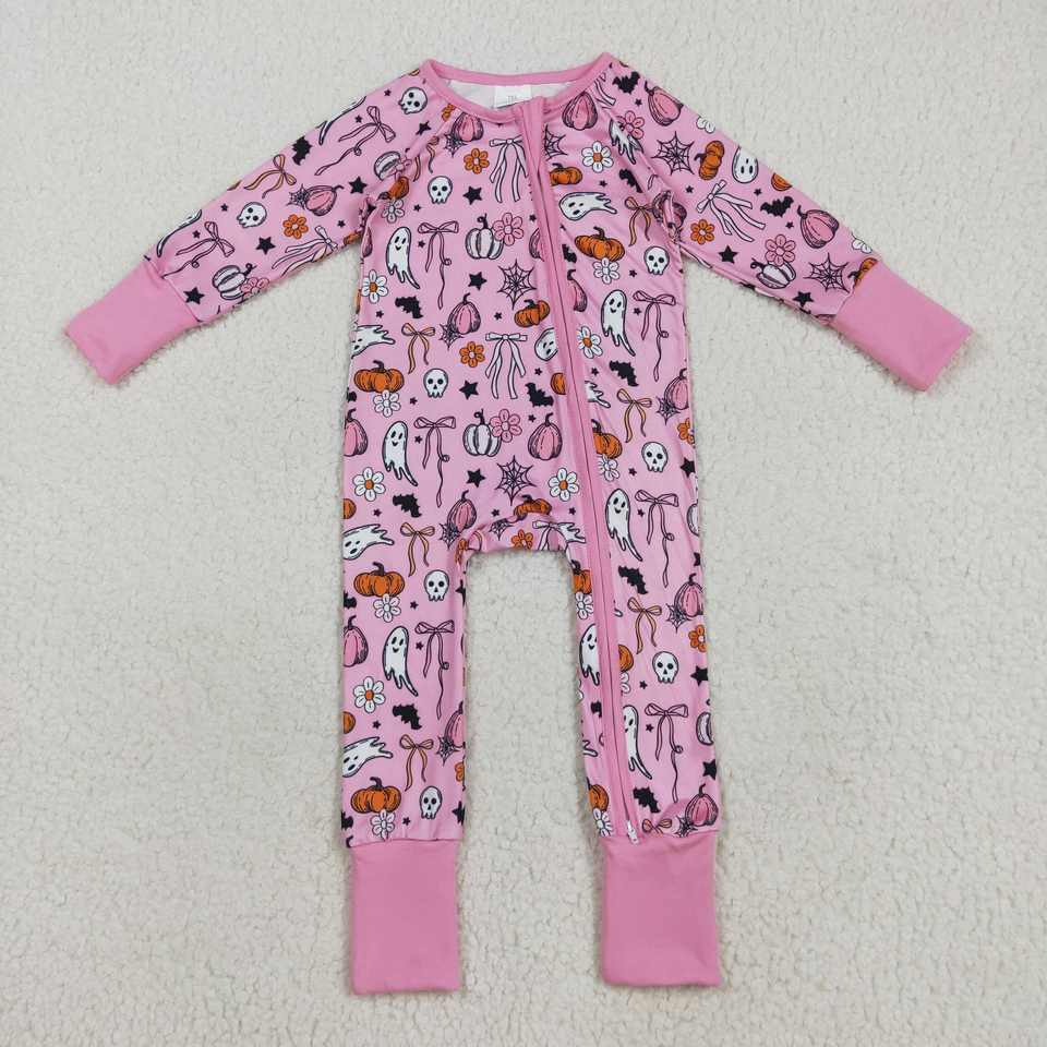 Infant baby colorful pumpkin print kids wholesale romper long sleeve zipper jumpsuit child warmth sleeper set