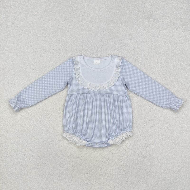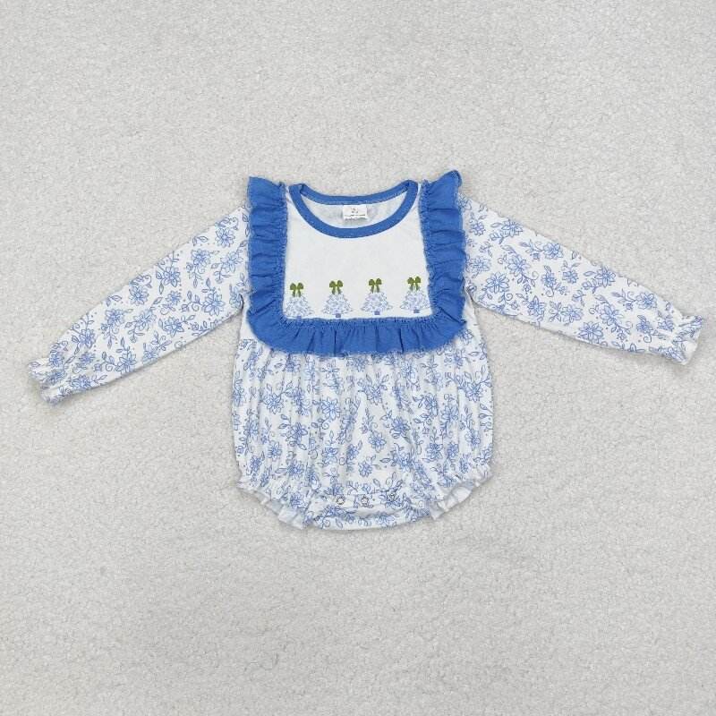 Infant baby girl blue Flowers embroidery kids wholesale floral romper long sleeve zipper jumpsuit child warmth sleeper set
