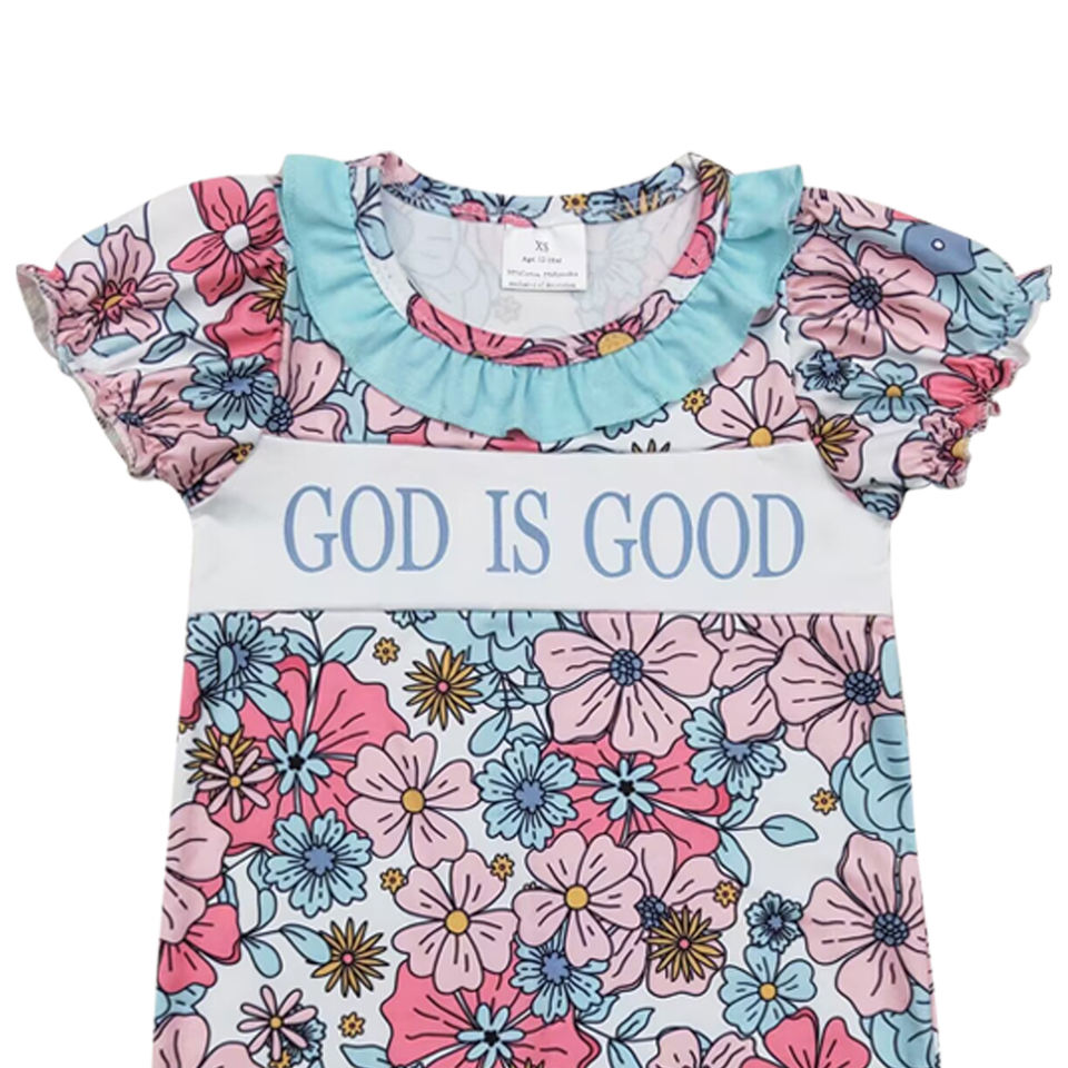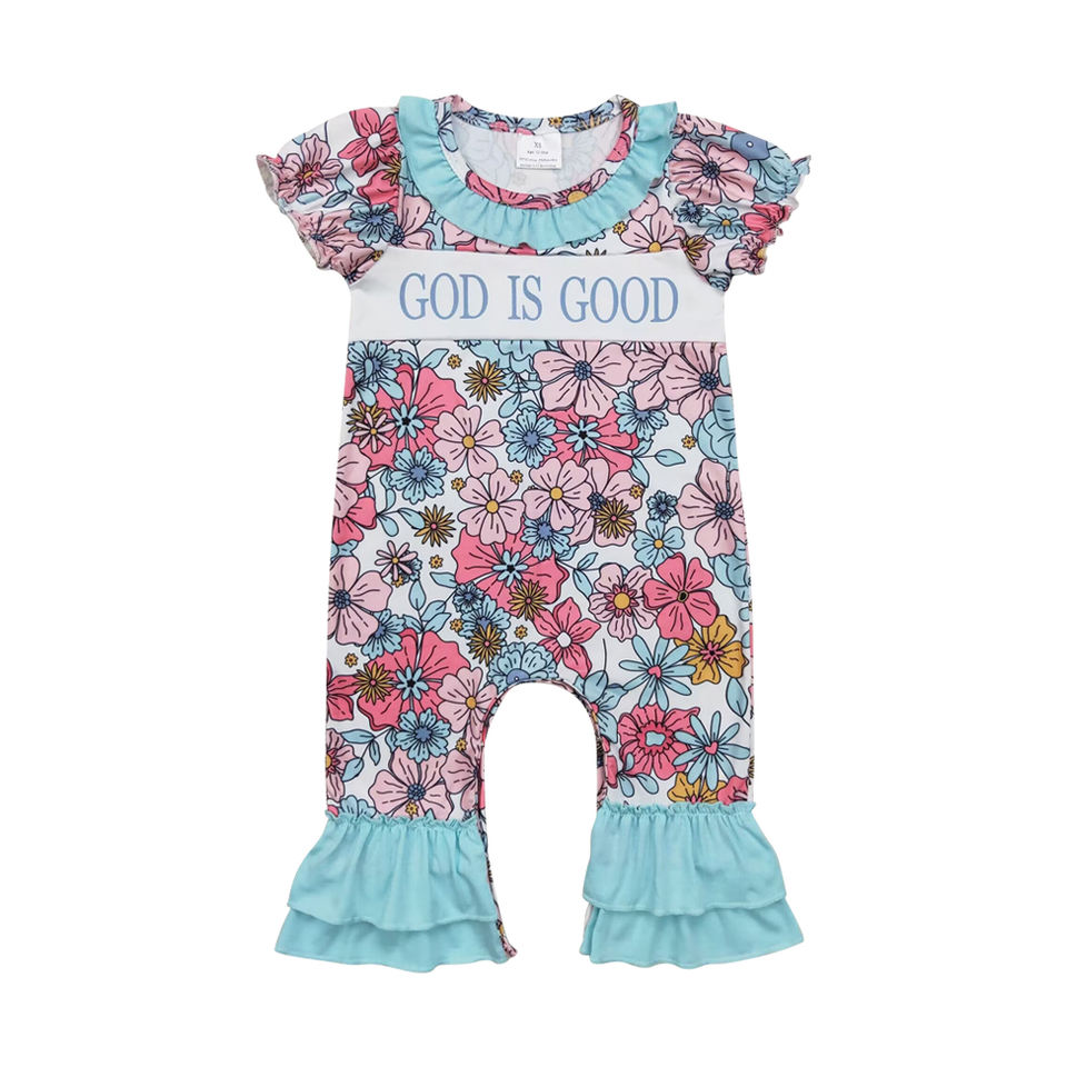 Infant baby girl flowers GOD IS GOOD print kids wholesale romper long sleeve jumpsuit child set