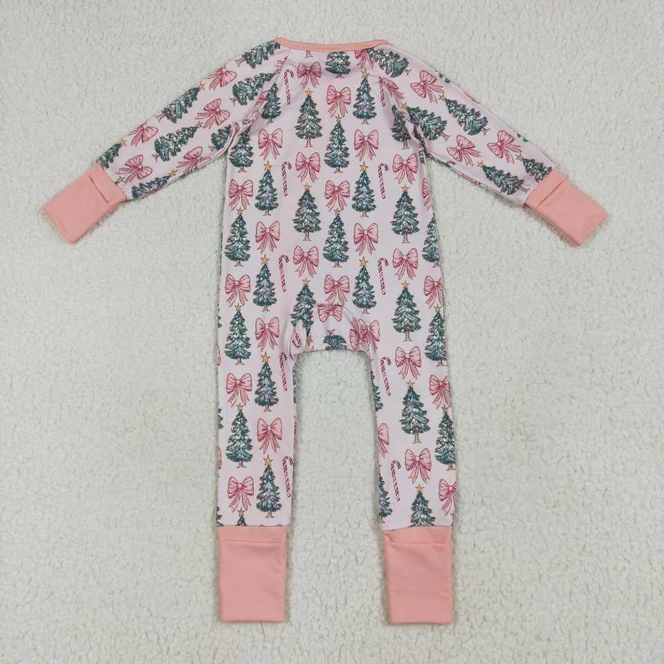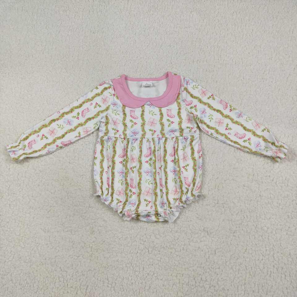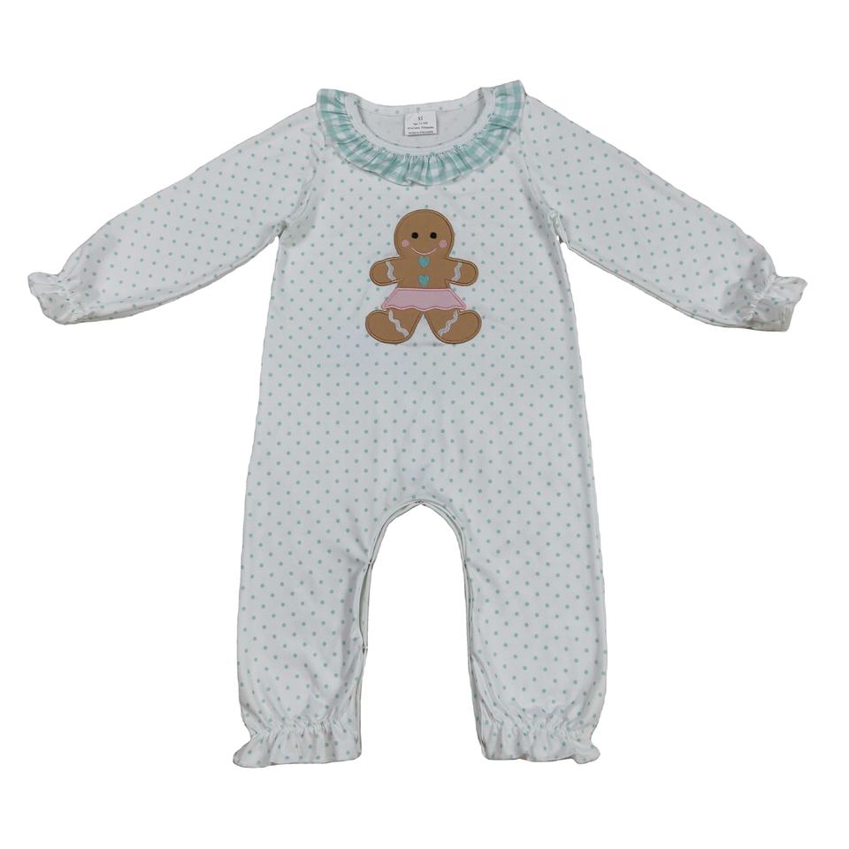 RTS Wholesale Infant Green Polka Dot Embroidered Jumpsuit Long Sleeve Gingerbread Zipper Gown Set for Baby Girls Cotton Spandex
