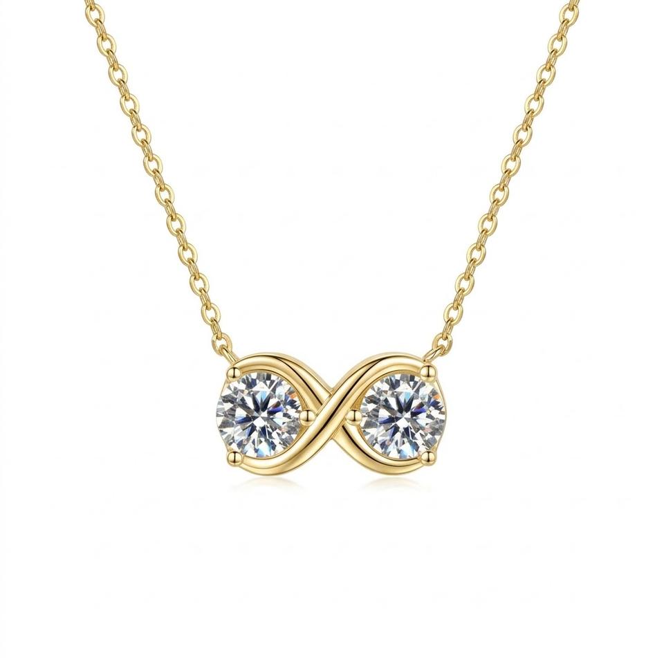 Collier Infinity en diamant, or massif 14 carats, diamant de laboratoire, pendentif rond à deux pierres, collier minimaliste pour mariage, cadeau d'anniversaire