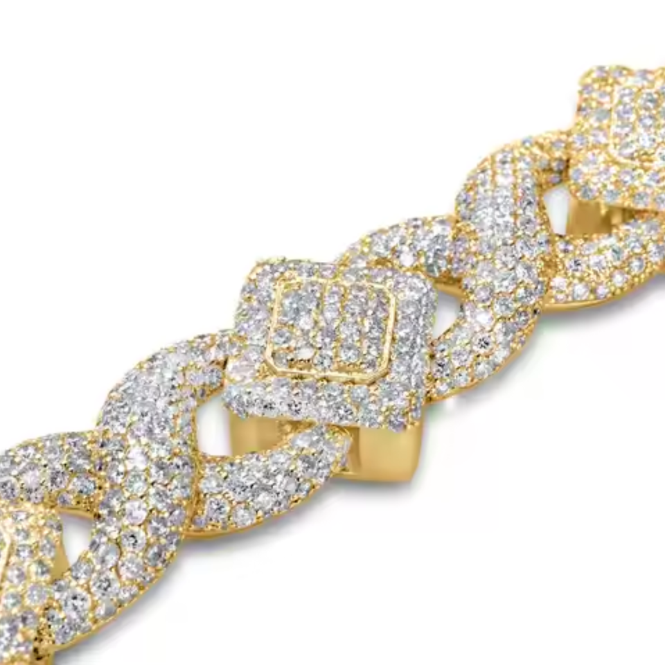Bracelet à maillons cubains en diamant Moissanite Argent S925 Plaqué or 18 carats Bijoux Hip Hop Bracelet de fête style glacé pour hommes