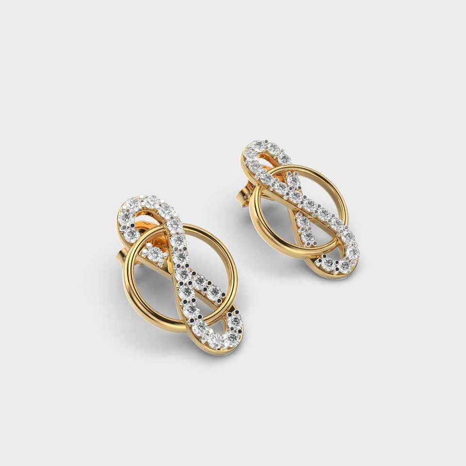 Boucles d'oreilles clous en diamant de laboratoire Infinity Loop 0,29 ct, or jaune 18 carats, certifiées IGI, plaquées rhodium, pour fiançailles, fête, mariage