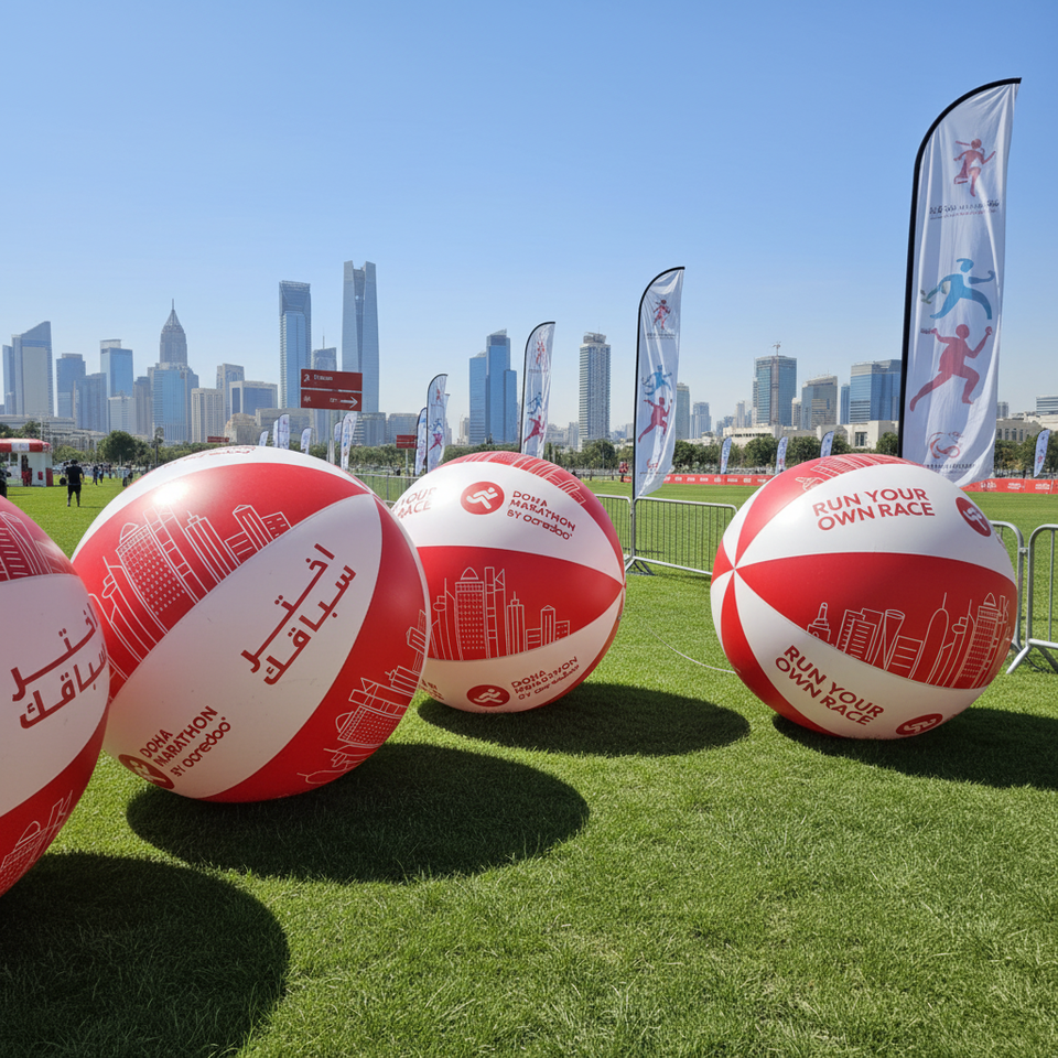 Ballon publicitaire gonflable hermétique en PVC, en forme de bouée, arche ou colonne, pour signalisation de marque lors d'événements extérieurs tels que les marathons urbains et les courses de course