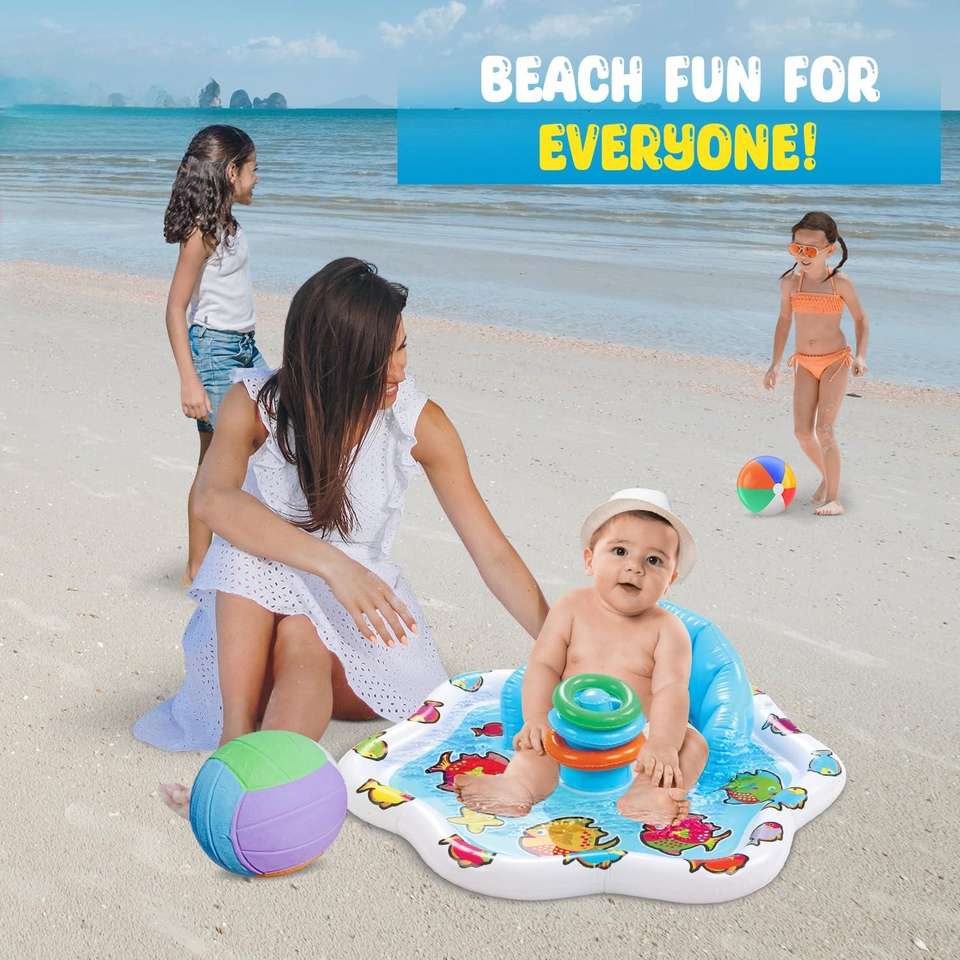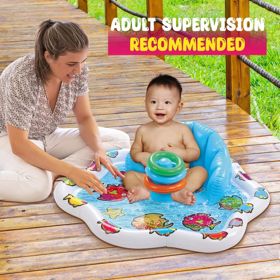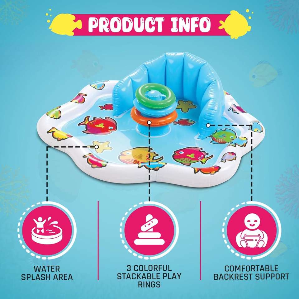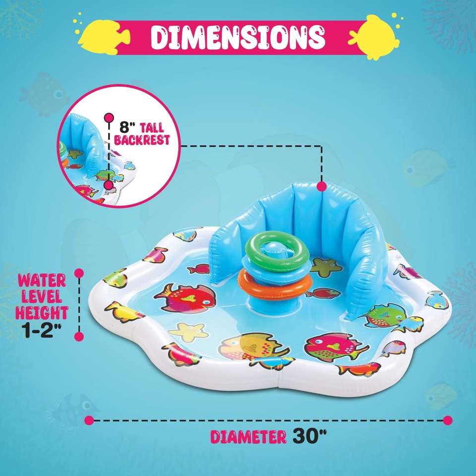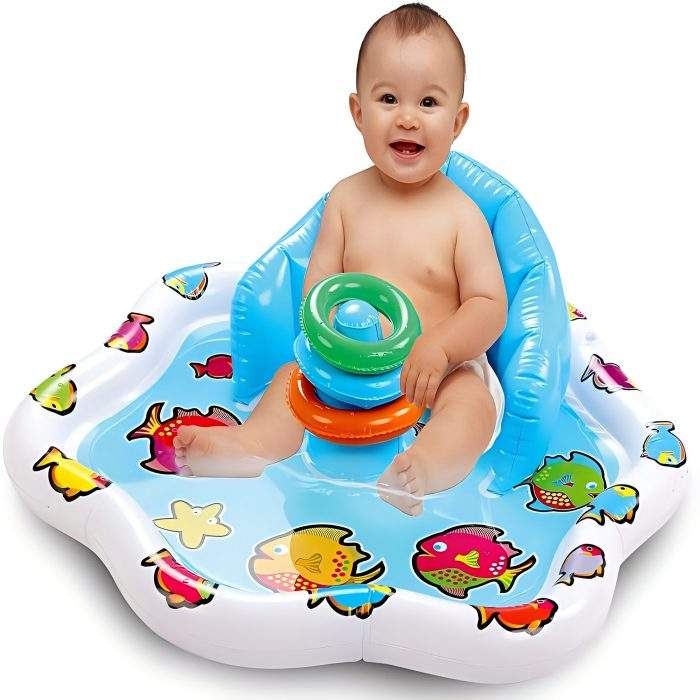 Bouée gonflable pour bébé avec auvent imprimé poisson, siège flottant pour nourrisson avec anneaux de jeu pour tout-petit
