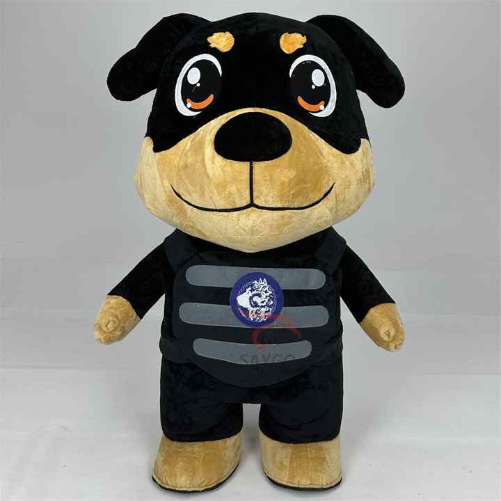 Poupées de chien noires gonflables Costume de mascotte de dessin animé en mouvement Costumes de chien de patte en peluche de 2m pour des événements d'adultes marchant