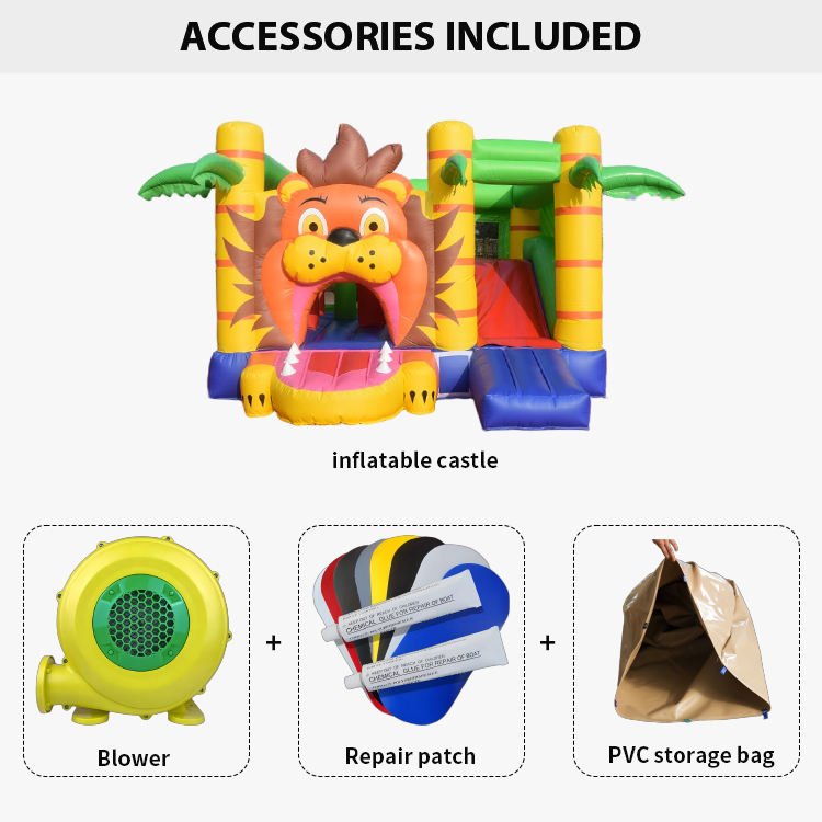Château Gonflable Commercial à Louer, Combo Lion avec Toboggan pour Fêtes et Événements