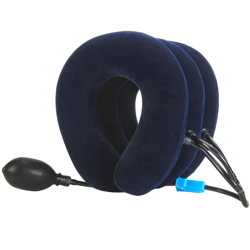 Dispositif de traction cervicale gonflable, support de cou en velours à trois couches, fonctionnement manuel pour usage domestique, bleu