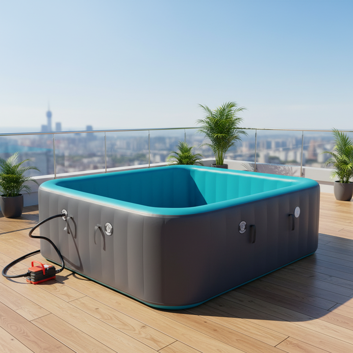 Design gonflable: Le design gonflable permet un montage et un rangement faciles, offrant une commodité aux utilisateurs qui ont besoin d'une solution de natation portable.