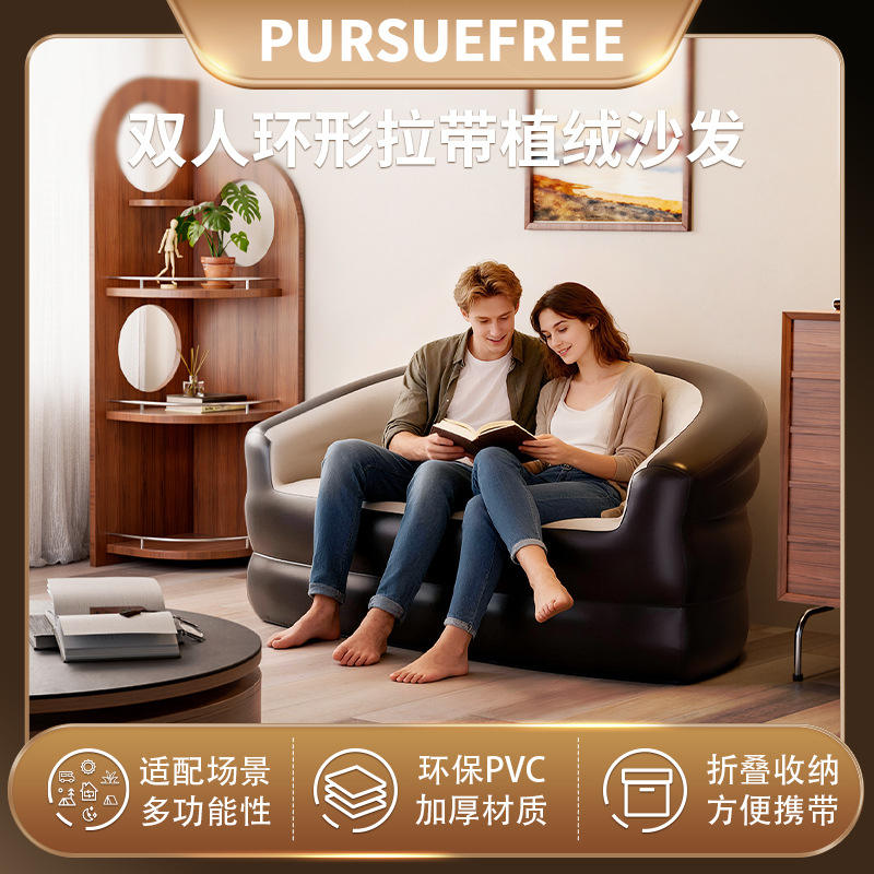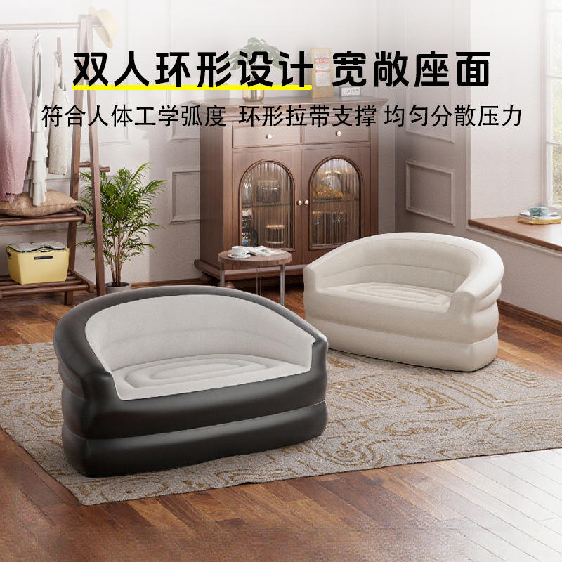Canapé gonflable double gris en PVC floqué, portable, pour l'extérieur et l'intérieur, camping, canapé pneumatique YW27507
