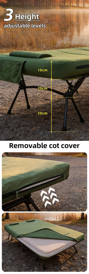 Lit de camping gonflable pliable, hauteur réglable, avec oreiller, pour utilisation en extérieur, au parc, à la plage