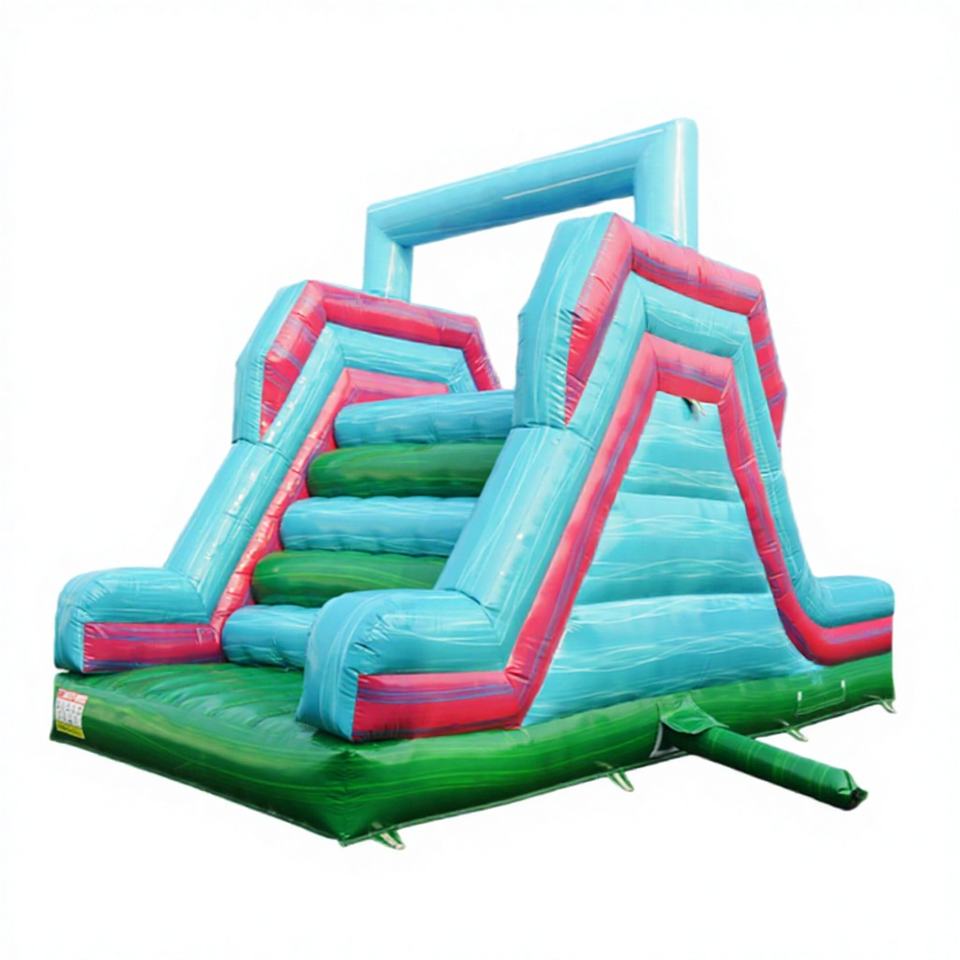 Ensemble combiné d'équipements de jeu d'extérieur commerciaux, toboggan sec et échelle d'escalade gonflable en PVC irisé, pour location de fête et divertissement