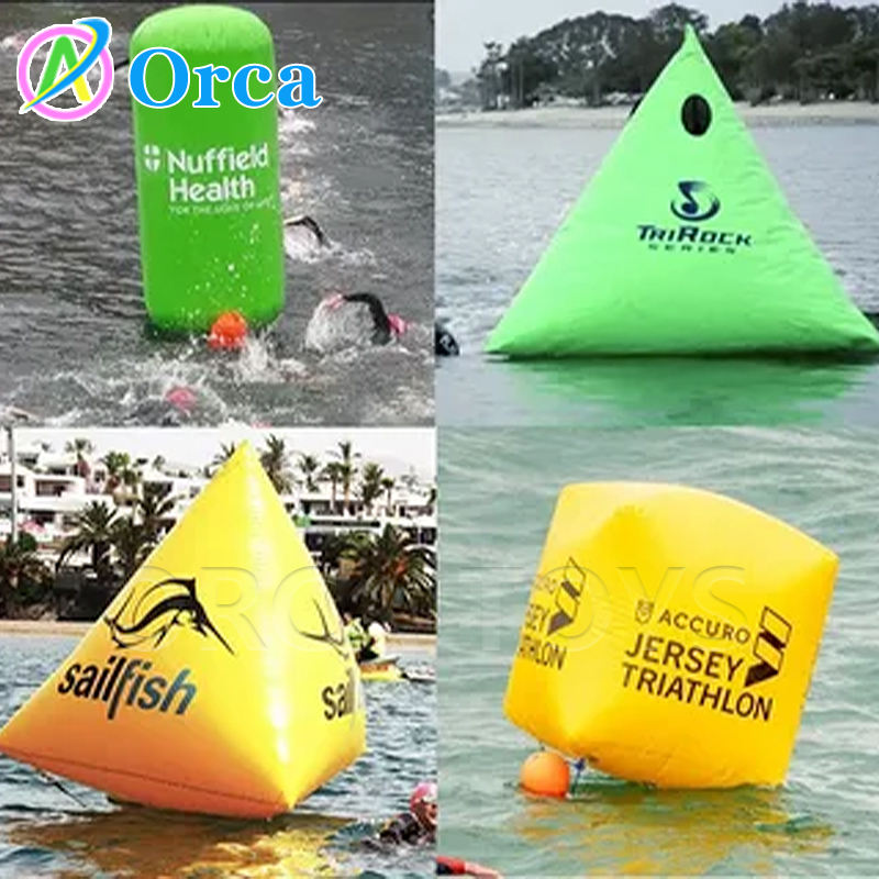 Bouée de natation gonflable en PVC pour parcs aquatiques et publicité en mer Bouée pyramidale tétragonale à cylindre triangulaire Marqueur de course Flotteur