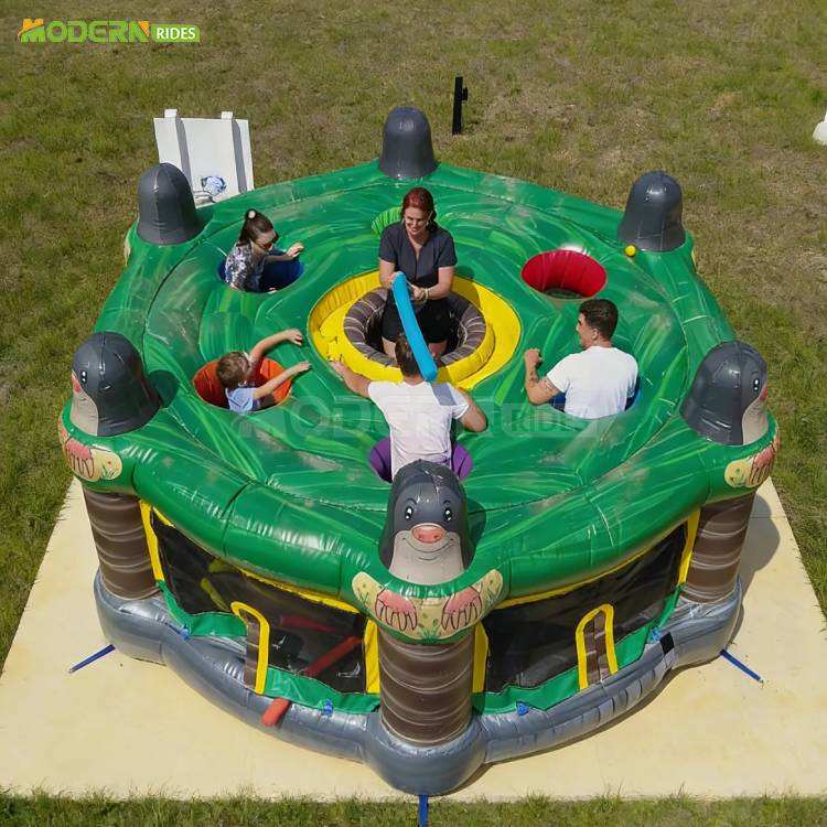 Structure gonflable commerciale de type jeu de frappeur de taupes humain, pièce maîtresse de parc gonflable