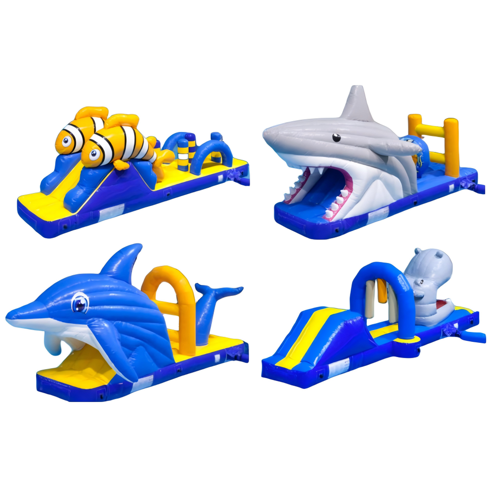 Toboggan gonflable pour piscine avec motif de poissons marins tropicaux, système d'aventure aquatique gonflable pour centre de natation, attraction de piscine