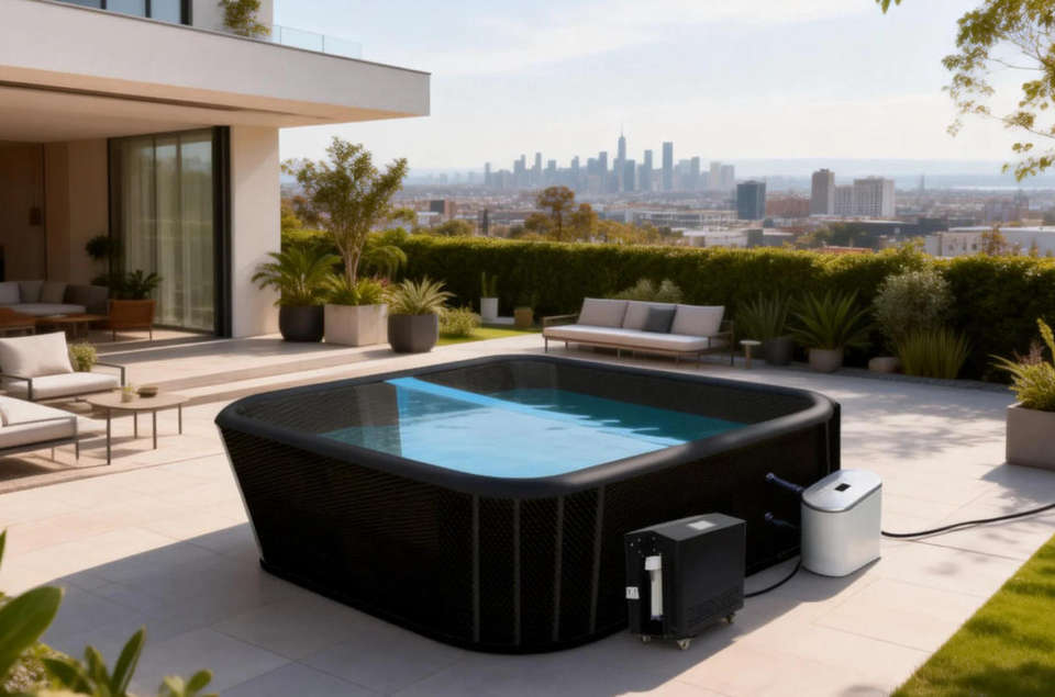 Piscine gonflable avec auvent solaire, protection UV, gonflage facile, installation rapide, jardin
