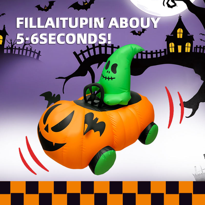 Charrette de citrouille gonflable, gonflage et dégonflage automatiques à un bouton, thème Halloween, électrique, fonction de suivi, câble USB extérieur