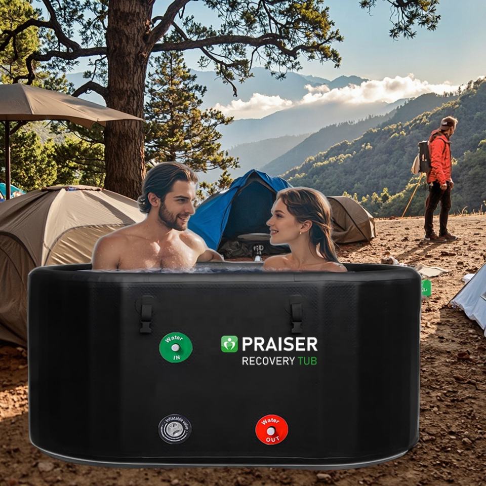 Inflatable Round Sports Recovery Portable Folding Spa Tub with Lid 420L Capacity for Ice Bath & Cold Plunge Therapy
