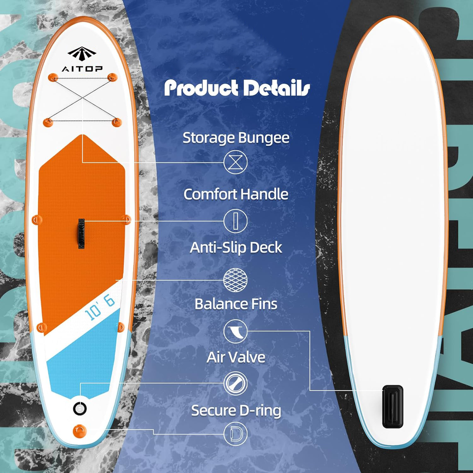 Planches gonflables Stand Up Paddle 10 pieds SUP Paddle Board Accessoires, Plate-forme de confort antidérapante pour jeunes et adultes