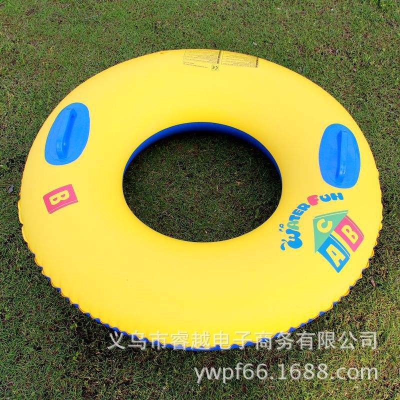 Bouée de natation gonflable en PVC épaissi 3,6 mm jaune et bleue pour enfants et adultes avec poignée