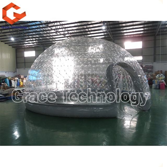 Tente gonflable transparente en forme de dôme de cristal pour le camping, avec lumières LED