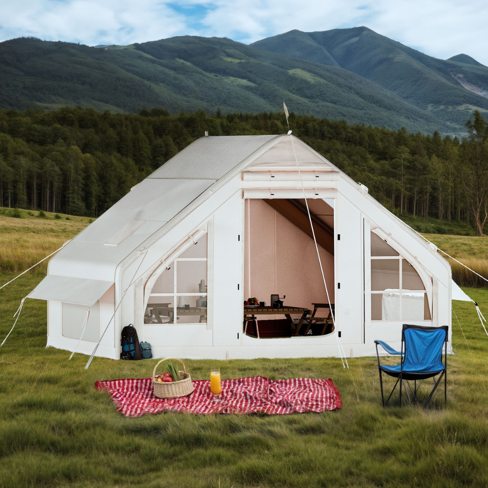 Accessoires:Pompe + Sac de transport + Stakes + Ropes