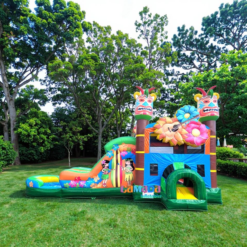 Combo gonflable Tiki Time Moon Walk Jumping Castle et toboggan Combo Backyard Bounce House and Water Slide