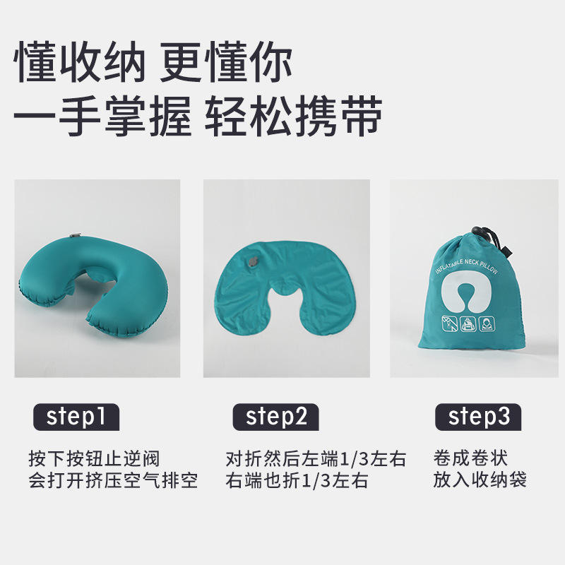 Oreiller de voyage gonflable en forme de U, support de cou portable, 28x26x14cm, bleu paon, pour utilisation en avion